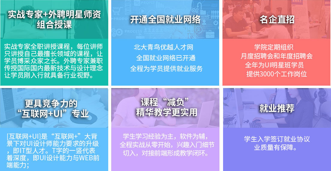 培养目标:能够从事企业项目整体UI设计,相当于具备1-2年工作经验,精通面试技巧和方法,具备就业能力,成为准职业人